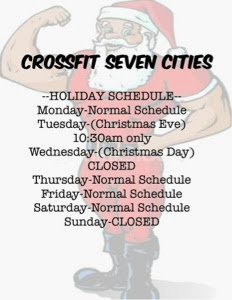 What a great week it has been!  Lots great wods with everyone and The Christmas Holiday.  Let me be the first to say how amazing it is to watch all of you become more fit on a daily basis!  I don't think there has been a week since we opened that someone hasn't Pr'd on a lift or workout.  That's so awesome!  Keep up the good work folks.  This is just the tip of the iceberg.